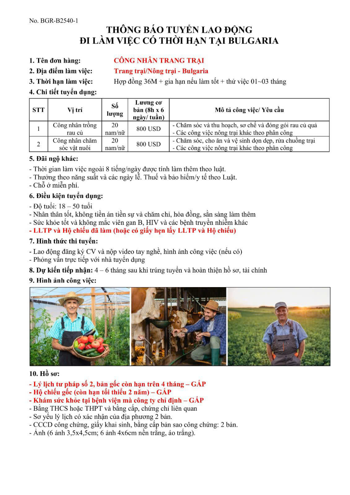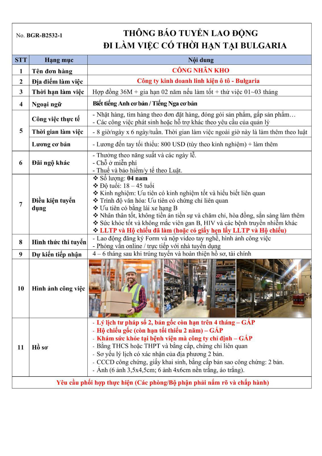 4. BULGARIA : Gửi form, quay video, Lấy cả Nam/Nữ