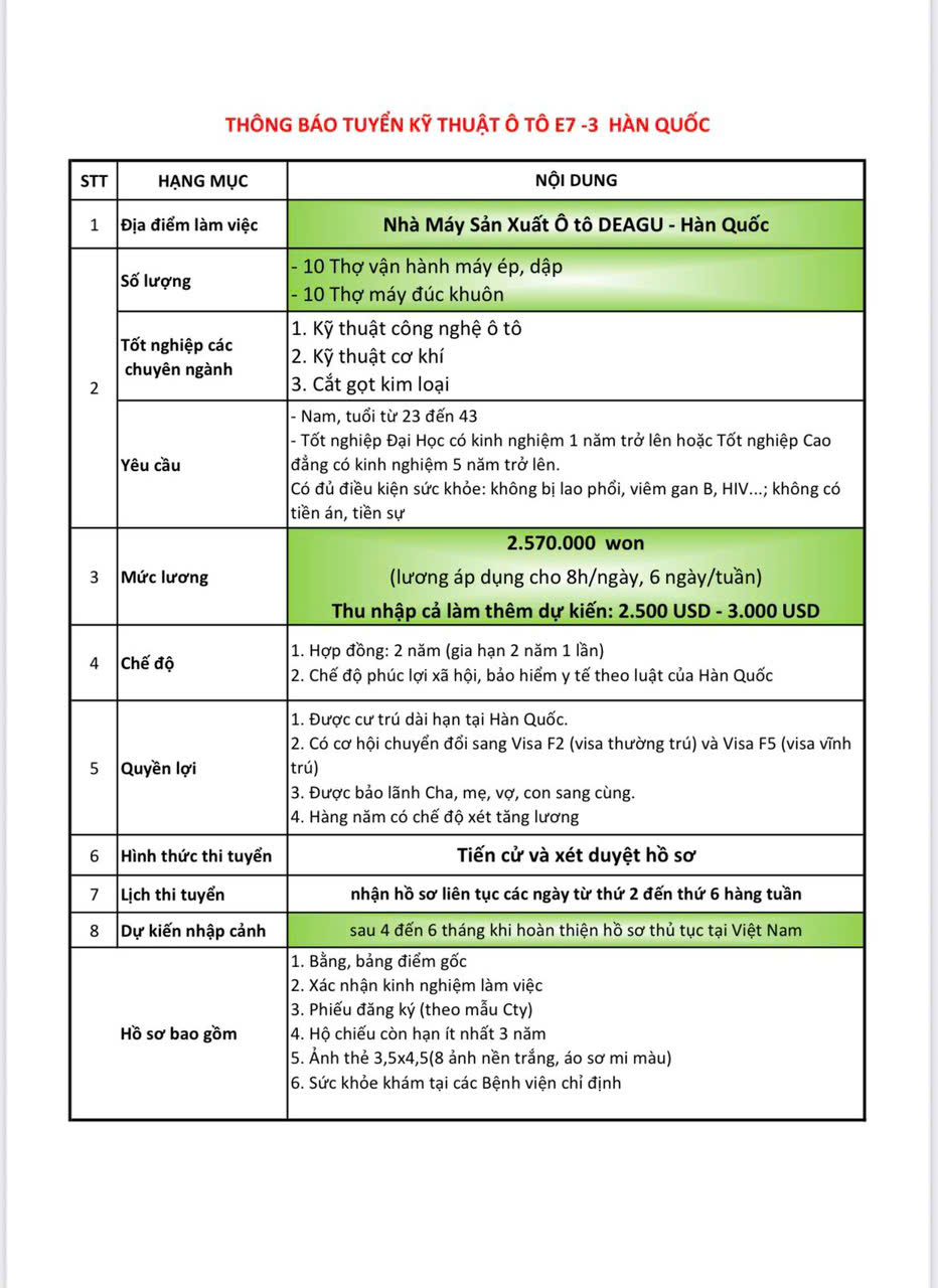 - Nam: 23- 43t, yêu cầu có tay nghề cơ khí