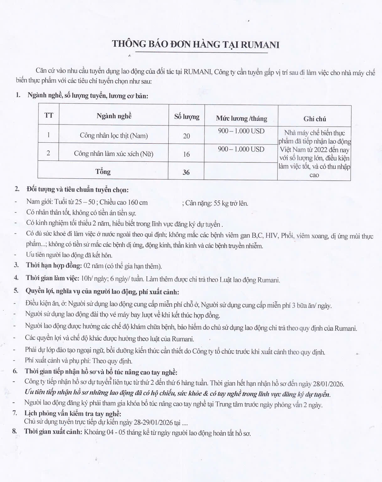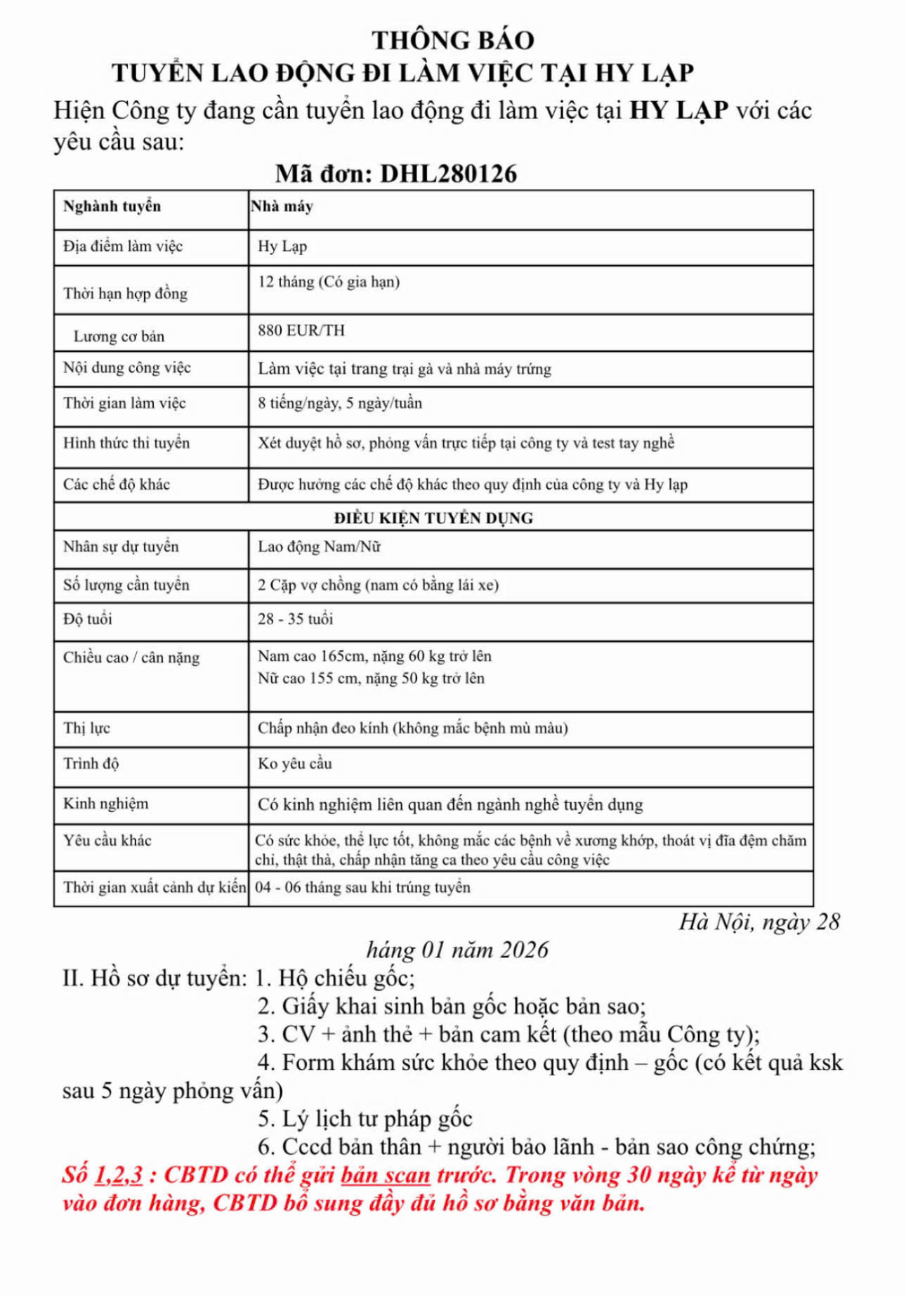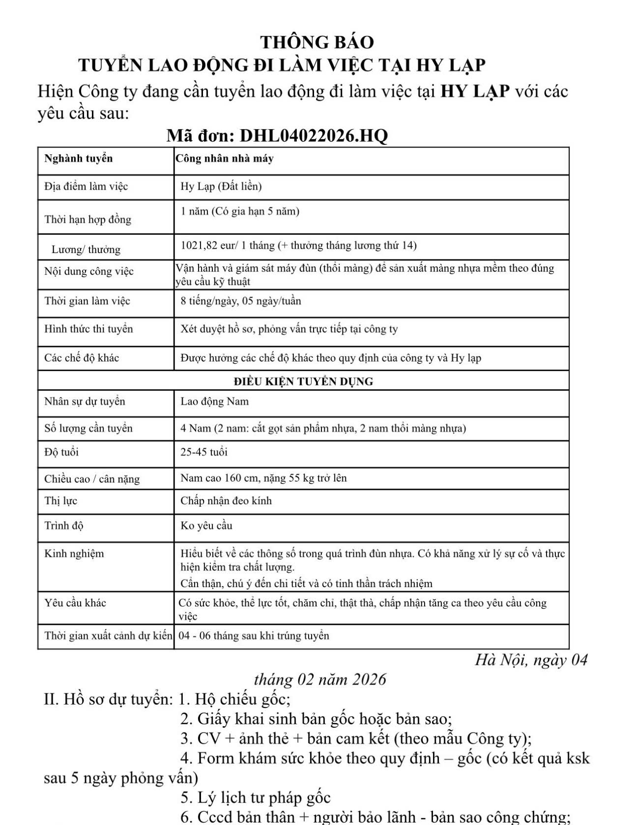 Thay mặt công ty, xin gửi đến quý anh chị các đơn hàng tốt nhận hồ sơ ngay dịp đầu năm mới 2026. Anh chị đăng ký qua Zalo và đến đăng ký trực tiếp tại công ty không thông qua môi giới. Nhân dịp đầu năm mới thay mặt công ty xin gửi đến quý anh chị lời chúc tốt đẹp nhất, rất nhiều đơn hàng mới với chi phí vô cùng hợp lý đang chờ đón anh chị, xin trân trọng cảm ơn !