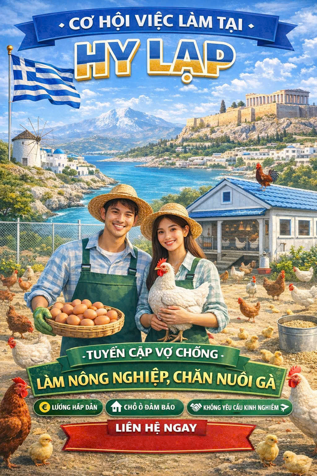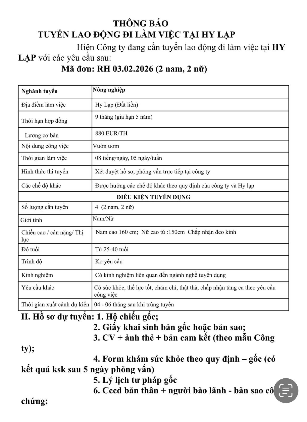 I. Thị trường Hy Lạp: Đang cần tuyển 50 nam/nữ tuổi từ 21 – 50t cho các ngành nghề: nông nghiệp, cơ khí, thực phẩm…..