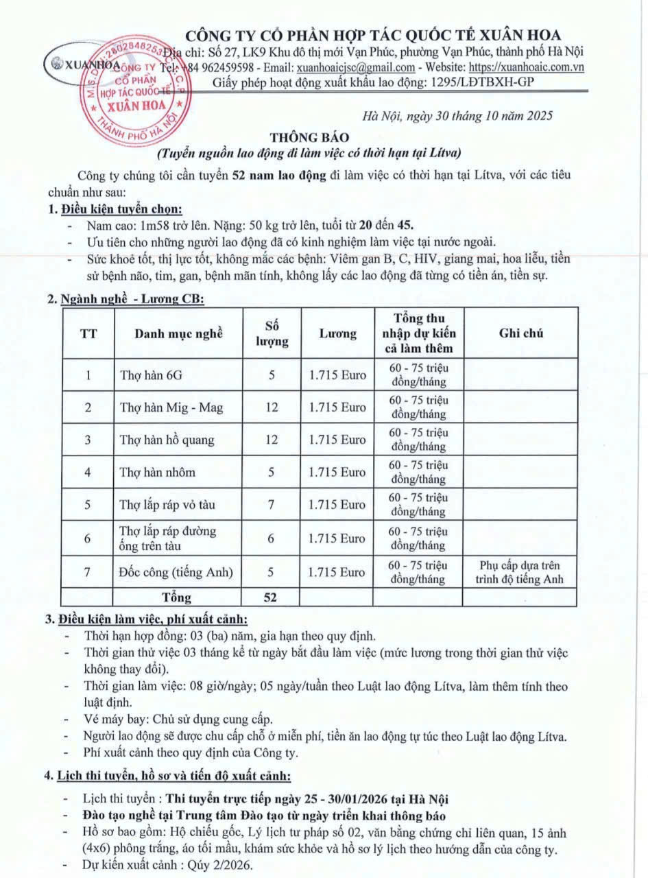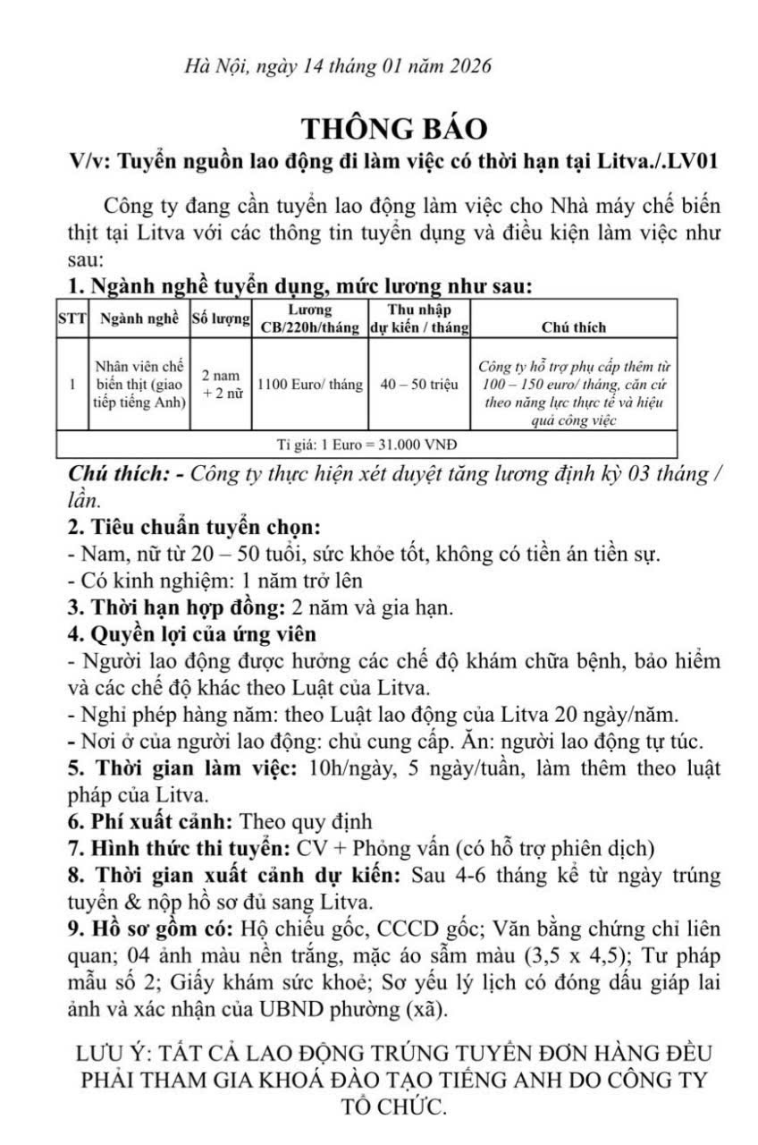 II. Thị trường Litva: Rất nhiều đơn hàng nhà máy, thực phẩm, cơ khí đang cần nhận hồ sơ ngay dịp đầu năm.