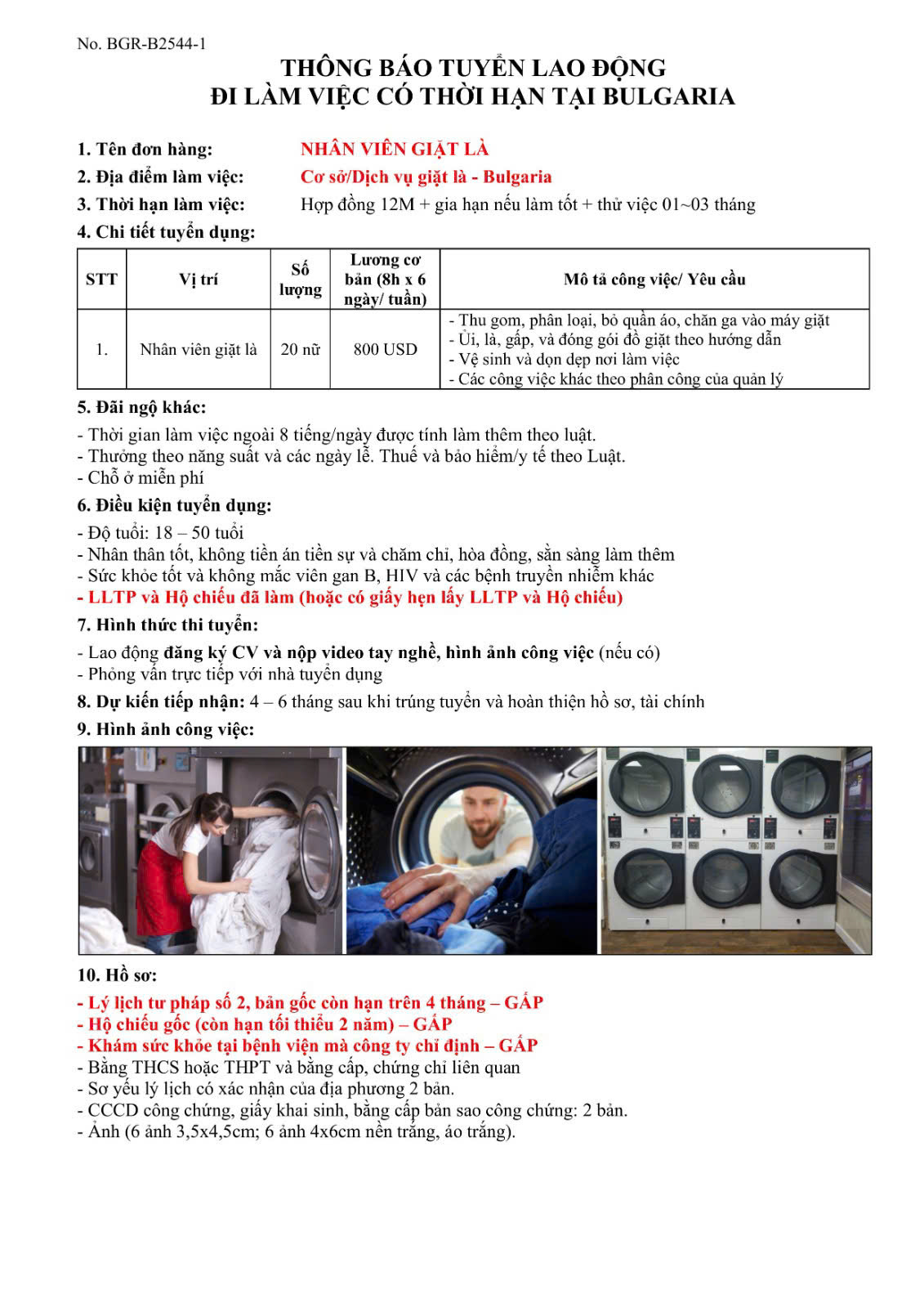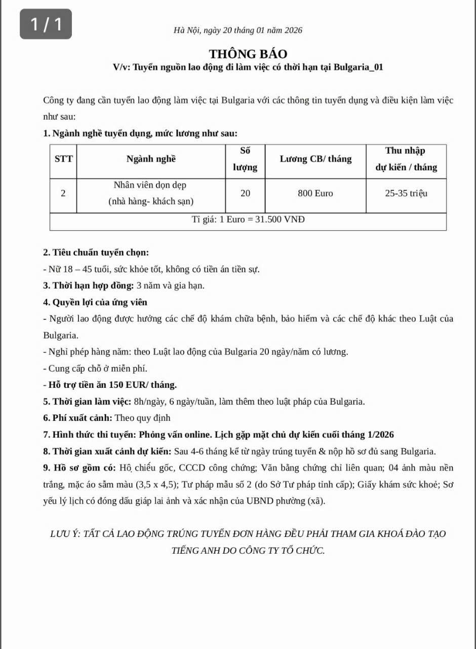 IV. Thị trường Bungari: Đang cần tuyển rất nhiều các đơn hàng dài hạn và diện thời vụ 6 tháng cho anh chị em lựa chọn.