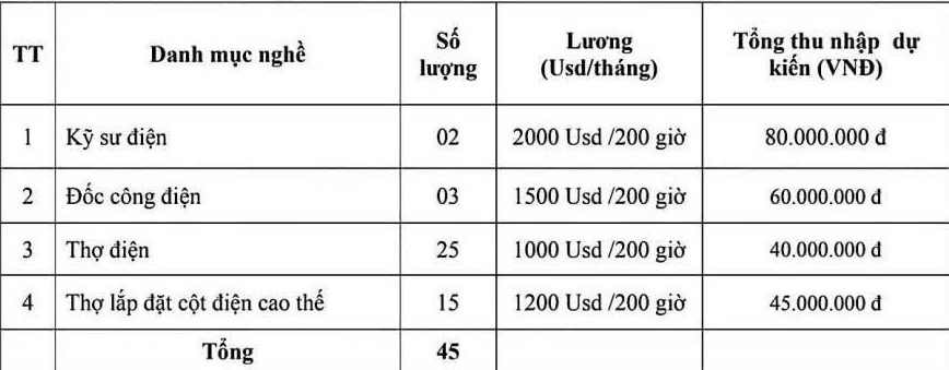 Cần tuyển 45 nam công nhân đi làm việc có thời hạn tại Công ty Electro Grup, hiện tại đang có rất nhiều lao động Việt Nam đang làm việc với điều kiện rất tốt, với các tiêu chuẩn như sau: